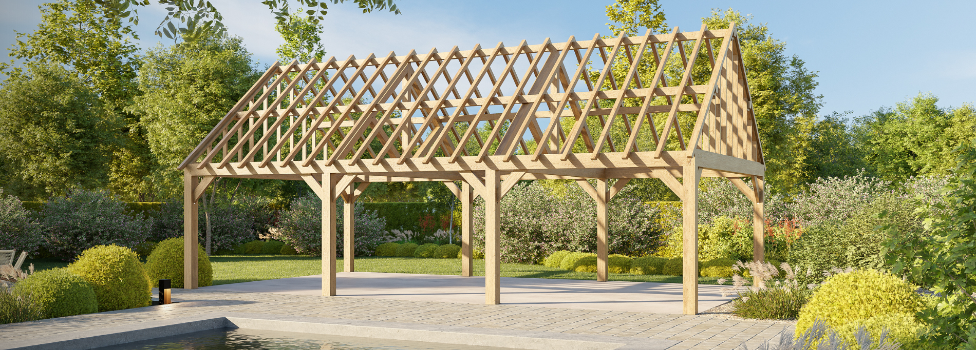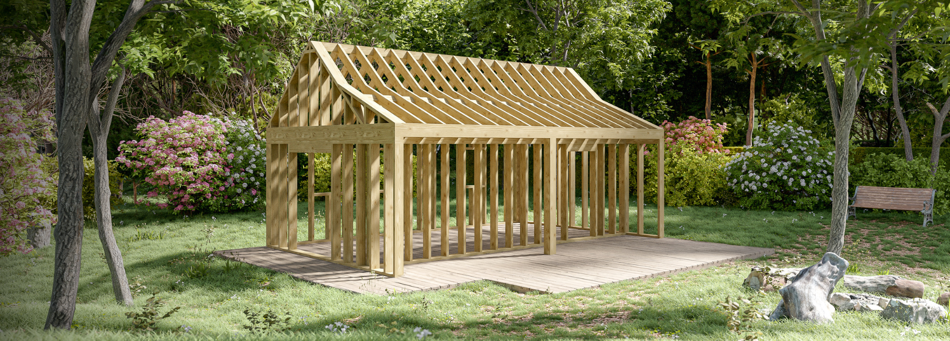 Erg mooie basis voor mijn kapschuurtje. Was met drie man prima in elkaar te zetten binnen een dagdeel. Nu nog het dak erop, tussen de staanders zwart Zweeds rabat en dan kunnen het tuingereedschap en de fietsen erin