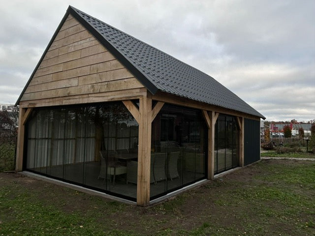 Ik heb de Sofia in Europese eiken besteld maar een heel stuk van het frame van de kap blijkt uitgevoerd in goedkoop vuren hout. De timmerlui hebben dus extra eiken balken moeten kopen en op maat moeten zagen om dit ook in eikenhout uit te voeren. Verder blijkt er een belangrijke houten verbindingspen niet bij te zitten die dus ook gemaakt moest worden. De levertijd is ook nog eens lang. Kortom, er zijn betere leveranciers dan deze.